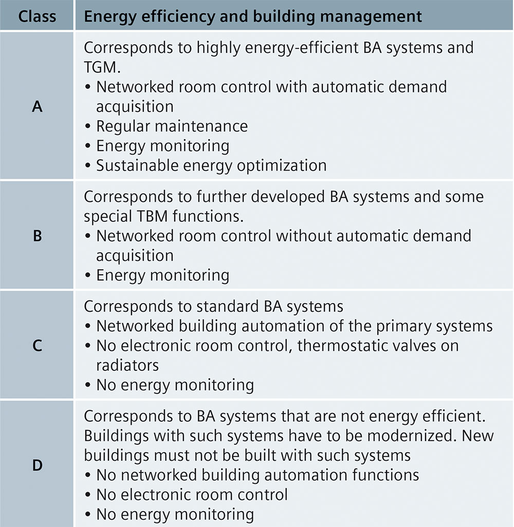 Characterisation according to room structure, comfort and air conditioning can be used for a rough estimate of the power demand. At the same time, further factors play an important role in the estimate such as the expense of the technical installations and the integration in a building management system. Whereby, it is not always the case that a sophisticated technical solution is combined with a high-quality building management system.