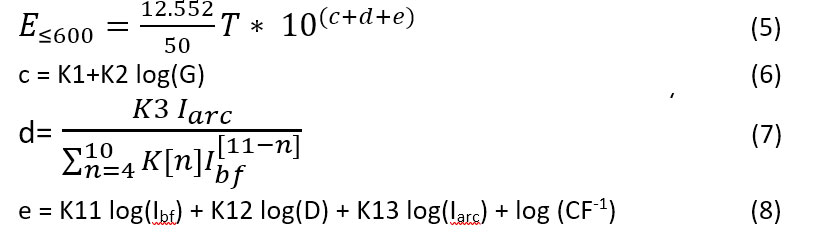 Note that, IEEE 1584-2018 has introduced this new correction factor, VarCf, which will be used to calculate the arc duration, using the reduced arcing current (Iarc_min). Following equations below for the correction factor: