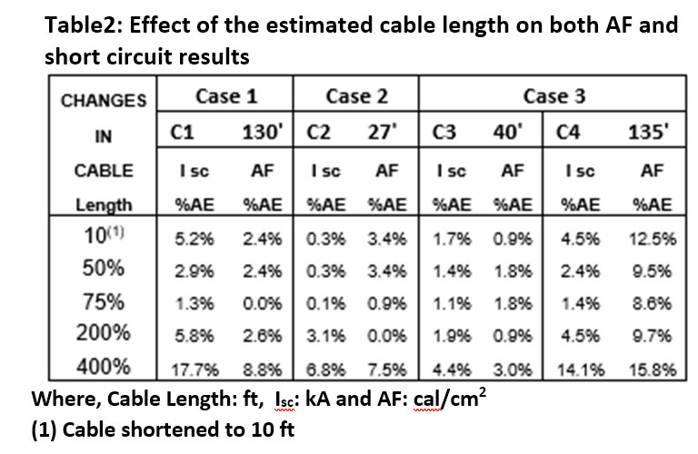 Practically, tracking a cable end to end to obtain its accurate length can be time-consuming if not impossible. Alternatively, in some practices, the cable will be assumed to 10 ft (worst case scenario), while in other practices it will be recorded with a certain percentage of error, by counting a number of floors from the feeder to the load, for example. To study the impact of varying cable length values on real-life systems, three cases in Figure 7 are used.