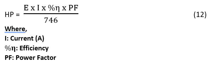 Finally, tracking every single load in a building system can be time-consuming and, in some cases, hard due to various site restrictions (as explained in section I). One common practice can be to approximate each load Horse Power (HP) by examining the feeder current limits and using this formula: