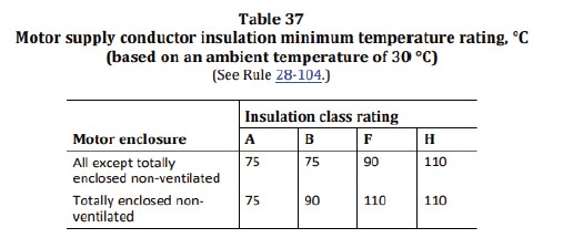 3) Where Table 37 requires insulation temperature ratings in excess of 75 °C, the motor supply insulated conductors shall
