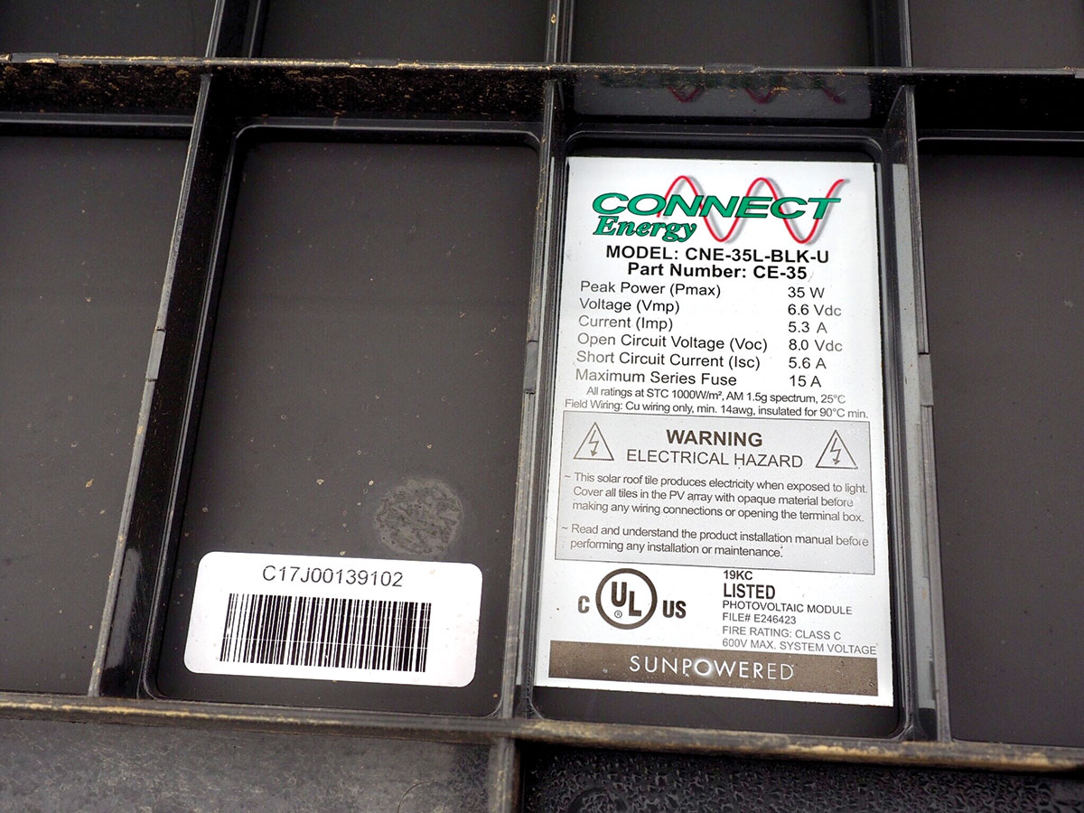SunPower, aside from selling the laminates to Connect Energy, was not involved in the final assembly of the BIPV module which included the frames, the junction box, the cables, and the connectors. Nor was SunPower involved in any way with making and attaching the label used on the 35-watt BIPV module.