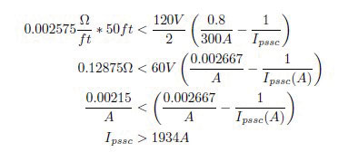 Using the values above (plus 120V for Vrms and 0.002575 Ω/ft for rL), we can solve for the last variable, Ipssc: