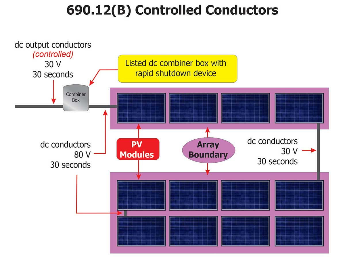Figure 1 is a block diagram that illustrates the concept. PV source circuits are indicated by the red box on the far left. The box represents the array of modules on the roof which produce the direct current. The PV output circuits route the DC to the inverter input circuit. The inverter converts the DC to AC synchronized with utility or other primary source. The inverter AC output is used to supply the grid and/or the premises wiring system.